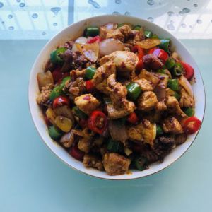 另起锅 把红绿辣椒 洋葱 葱姜蒜放入锅中爆炒