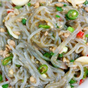 放入粉条,炒软后放入耗油、盐、花椒粉、胡椒粉、生抽调味。