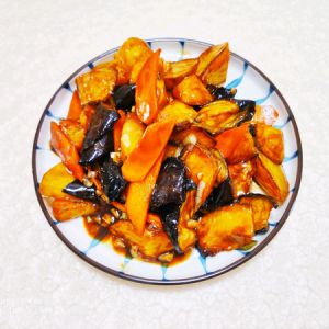 倒入料汁炒一下,接着马上把土豆茄子倒进去,翻炒一下,茄子和土豆上均匀的沾上料汁就可以出锅了