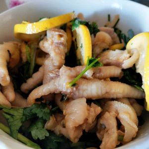 姜末,料酒,盐,花椒油,蒜油,米醋,柠檬,糖,香菜,耗油,百香果