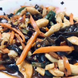 食材准备,鸡胸肉,胡萝卜,青椒,木耳切丝,葱姜蒜切末