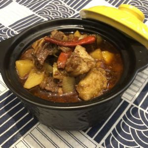 电压力锅到时间以后将炖过的牛肉倒入炒锅中并放入土豆一起再炖15分钟左右即可