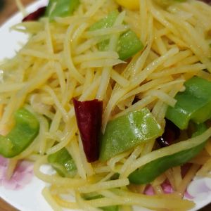 最后倒入土豆丝大火翻炒,翻炒1分钟左右,倒入生抽,白醋,白糖和盐