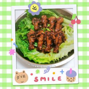 将鸡翅摆放到洗净的生菜叶上,完成~