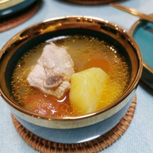 最后加少许盐调味,鲜香的土豆排骨排骨汤就完成啦