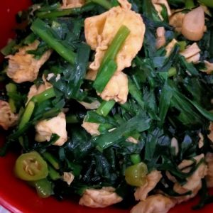 把炒好的鸡蛋到锅里跟韭菜翻炒均匀即可