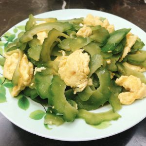 5.倒入已炒熟的鸡蛋翻炒均匀后按照个人口味调味(因为之前苦瓜和鸡蛋都已经加过调味料,口味淡的朋友可以直接跳过加调味料的步骤)