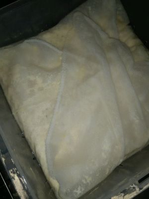 将纱布四个角拎出,或者倒扣,充满豆香气味的豆腐就做成了!