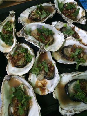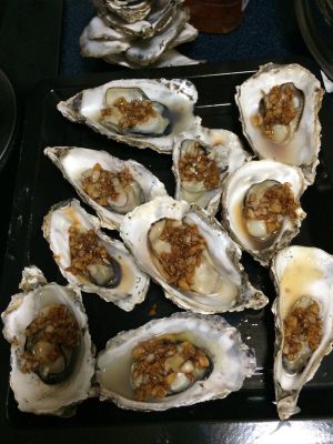 蒜切碎,热锅倒油,放蒜末炒香。炒好后放碗中加少许海鲜酱油!蒸好的生蚝撬盖取出!把酱料分点在生蚝上!
