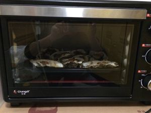 烤箱预热后,将摆好的生蚝放入烤箱,200度上下烤10~20分钟!生蚝的汁水很鲜,不必烤太长时间!要保证汤汁仍在!