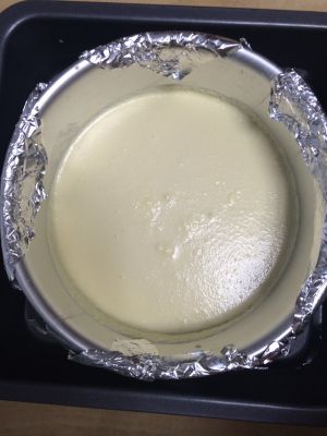 倒入模具,活底外包上锡纸,水浴法,160度50分钟,表面金黄即可。