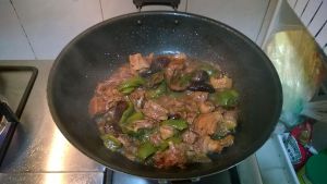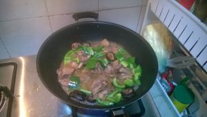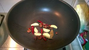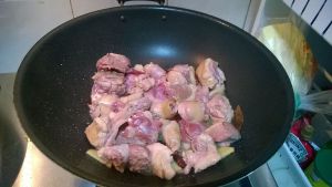 香料爆香后把腌好的鸭子放进去,大火炒到表皮发白