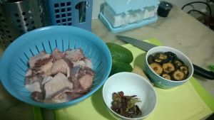 材料全家福,鸭子买的时候就已经剁好块,香菇提前一两个小时用温水泡发,这里熊猫忘了买蒜就没放,其实还是有比较好