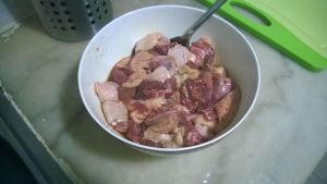 鸭子洗干净滤掉血水用酱油蚝油糖跟盐抓一抓腌20到30分钟