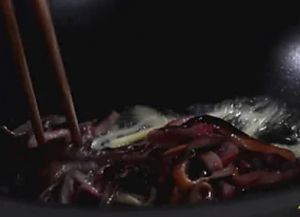 姜丝爆香后加鳝丝煸炒,加料酒爆香。加入三碗水煮沸后加入家乐猪骨浓汤口味浓汤宝搅拌直至溶解,放豆芽和青红椒丝,改小火煮。