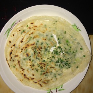 因为擀得太薄中间裂开了,不过味道很棒!!!吃起来很酥像手抓饼!!