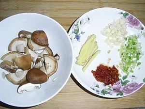 鲜香菇几朵,蒜、葱切末,姜切丝,辣椒酱。