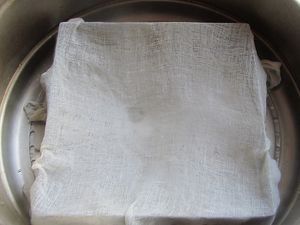 在蒸锅中烧锅开水, 将屉布打湿后放好;