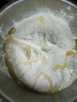 面粉里放点油,一会用75度水烫一下,做成烫面的。