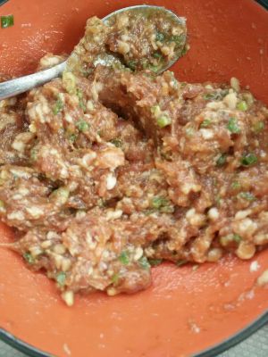 肉馅,大油,香葱,盐,酱油,鸡精,花椒水