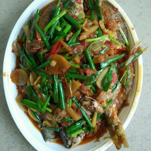 将鱼放入汁水中焖煮十分钟左右,出锅盛盘