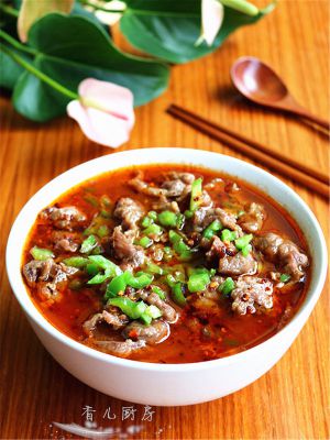 牛肉切成薄片后用清水泡清血水后洗净沥干水分