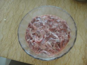 放入碗里,加入盐,料酒,生粉抓匀后静置1小时再倒入一汤匙油抓匀