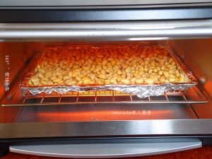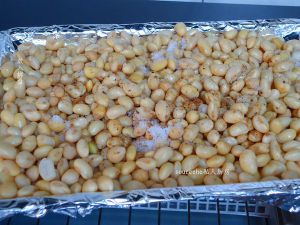 烤箱预热170度,烤25分钟;PS每个烤箱不同,温度和时间略有差异。PS:比香脆烤黄豆的时间要长,是因为,浸泡的时间长,水份多,五香要入味,时间才长,才能熟。