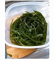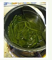 海带丝、莴笋、香菜倒入沸水中灼一分钟捞起。