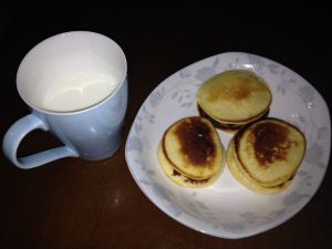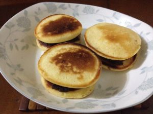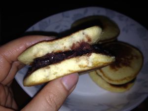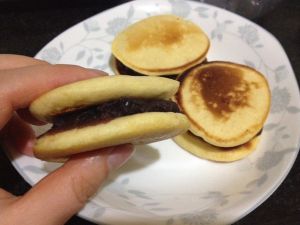 涂上豆沙蜜豆,再盖一块饼。做好了~