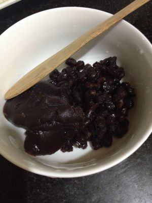 红豆沙和蜜豆(你也可以用果酱什么的)。