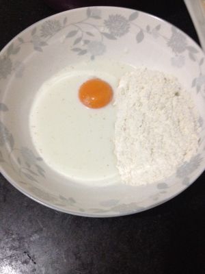 5g白糖+65g面粉+70g牛奶+蛋黄,搅拌均匀。