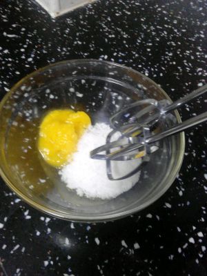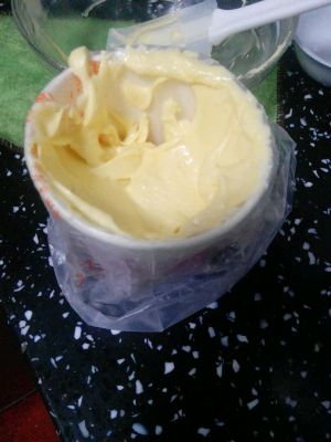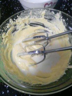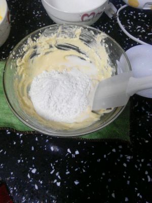 将低筋面粉和泡打粉混合加入搅拌均匀