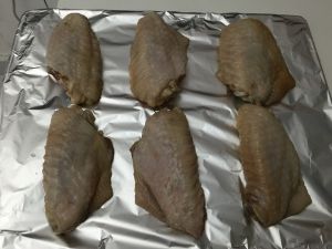 烤箱预热,然后将表面的渣去除,取一烤架铺上锡纸,再将鸡翅摆上