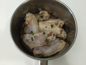 鸡中翅洗净后加入适量的盐、生抽、蚝油、蒜蓉、姜丝、胡椒粉、黑椒粉、蜂蜜、香油拌匀腌制半天