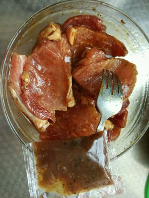 忘了一点,腌制的时候可以用叉子在肉片两面扎一下,更容易入味。我只腌制了十几分钟哦!