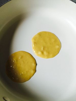 平底锅加热,小火煎到表面起小泡干掉,翻面。