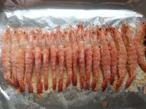 出炉装盘,红红的虾上面细细的白色盐粒,很高大上的菜哦!
