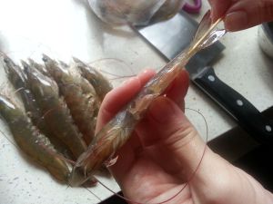 虾洗净,去掉虾须,挑去虾线后沥水备用(嫌麻烦也可以不挑虾线)