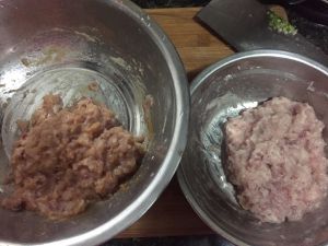 鱼肉分成两份,一份三分之一,一份三分之二,少的做包心,大的做外衣!都加盐,蛋清,淀粉,料酒拌匀!包心那份多加一味生抽着色!