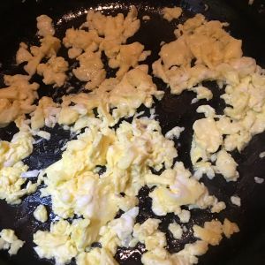 锅中加入少许油,大火烧热,倒入鸡蛋液炒散盛出备用。