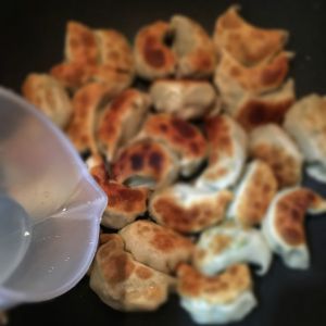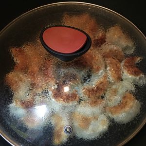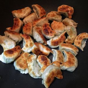 全部做好后,起锅倒入少许油大火烧热,放入饺子中火煎至微焦。