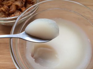 放在冰箱中冷藏就可以了,一个多小时以后,就会变成白色的固体状。