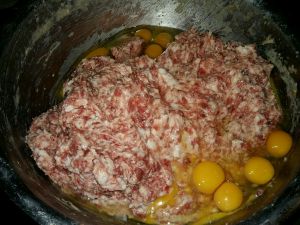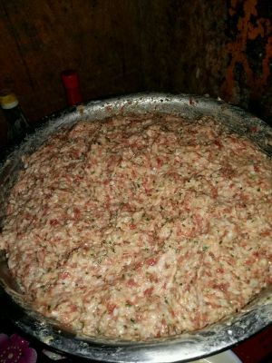 放入肉末和鸡蛋放入盐,葱,姜料酒