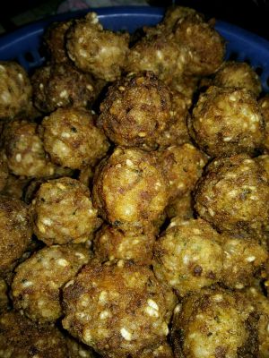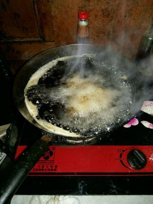 开启油锅,做成丸子形状下入油锅炸成金黄色即可