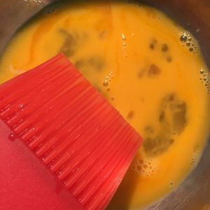 烤前刷蛋液,每烤5分钟,补刷一次蛋液