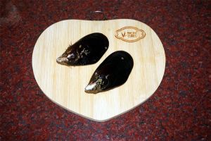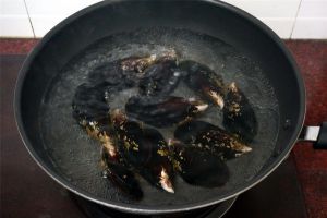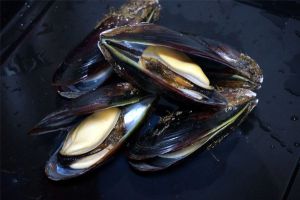 掰开青口,将依附着的泥土冲洗干净,剪去青口肚里的小草,只留一个壳装肉即可。