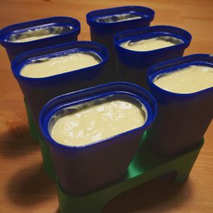 將其倒入雪條盒,將其底部反復輕輕敲打桌面至平鋪狀,以保證內部沒有空氣。