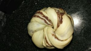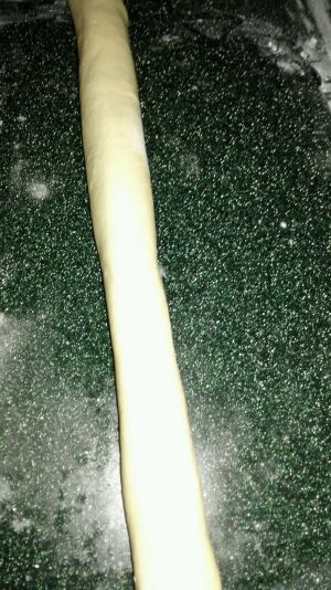 将绞好的长面团一圈圈盘起来,将末端藏在下面