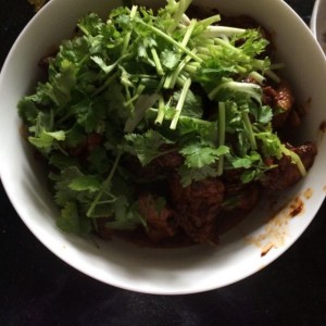 最后收汁,放点盐和小葱,我家没有葱所以放的香菜